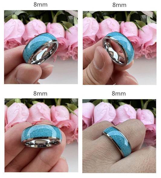 Heritage Architecture Ring - 4/6/8mm Platinum-Plated Tungsten Couple Rings with Crushed Turquoise Inlay