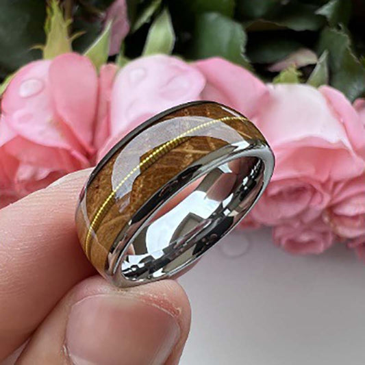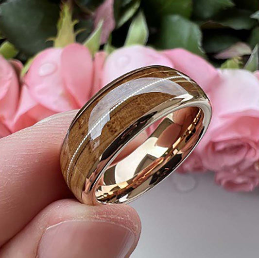 Musical Soul Ring - 8mm Rose Gold-Plated Tungsten Reclaimed Guitar Wood and String Men's Wedding Band